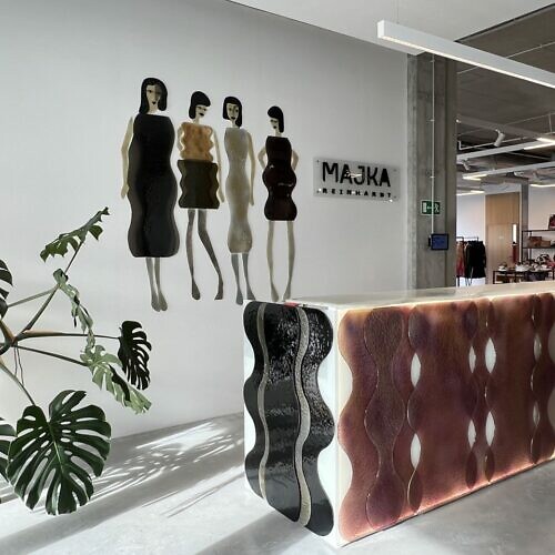 W tym wnętrzu mieszka sztuka. Wyraża się to nie tylko przez liczne jej dzieła, ale także formę, materiały i kolorystykę, przy pomocy których architektka Agnieszka Musiał-Chmielnik, założycielka Musiał Studio, stworzyła bardzo udaną kompozycję wnętrz. W założeniu nawiązuje ona do Bauhausu, gdzie główną rolę odgrywa zabawa formą i kolorem. Stąd tak istotna jest tu gra kształtów i struktur malowanych jasną paletą barw. Materiałem dominującym stało się drewno w ciepłym wybarwieniu, a kolorem biel, która w części kuchennej nabiera nieco cieplejszego odcieniu, subtelnie przechodząc w beż. Kompozycję przestrzeni tworzą kubistyczne wręcz, proste formy, których zdecydowany charakter przełamują obłości i zaokrąglenia – przy wyspie kuchennej, szafce pod telewizorem, w formie mebli wolnostojących, oświetlenia i dekoracji.