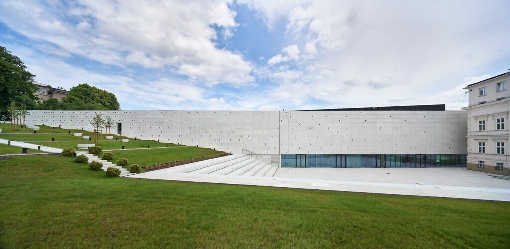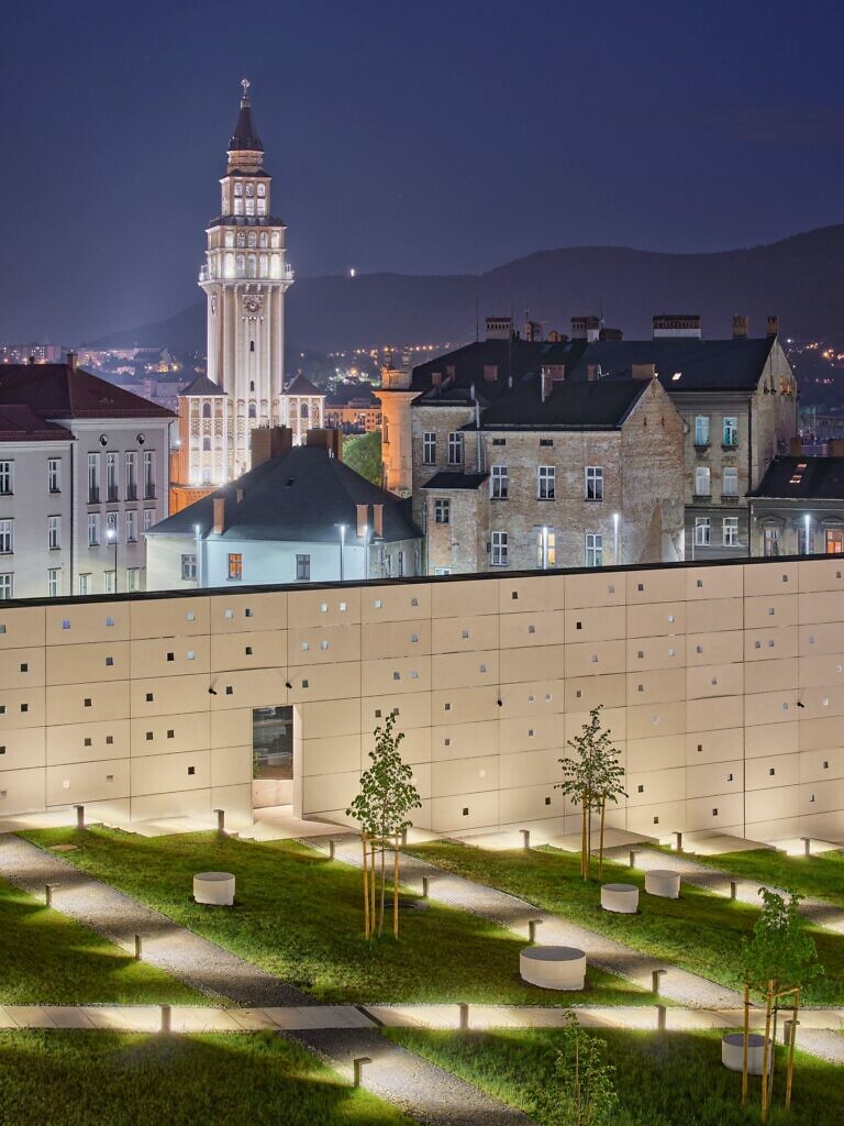 Zespół Nizio Design International stworzył tu kompozycję przestrzenną opartą na dialogu między przeszłością a nowoczesnością. Gmach o dość ascetycznej formie z betonu architektonicznego, perforowanego niczym taśma filmowa, został powiązany z zabytkową Willą Rotha, odrestaurowaną z najwyższą starannością o detal. Oba obiekty spaja przeszklony łącznik, który pełni funkcję komunikacyjną i symboliczną, stanowiąc metaforyczny most pomiędzy dziedzictwem a przyszłością. W projekcie wyczuwa się dużą dyscyplinę formy i świadomość materiałów. Światło jest tu równorzędnym tworzywem architektury, które organizuje przestrzeń, ożywia perforowaną fasadę i wprowadza do środka wymiar niemal filmowej narracji.