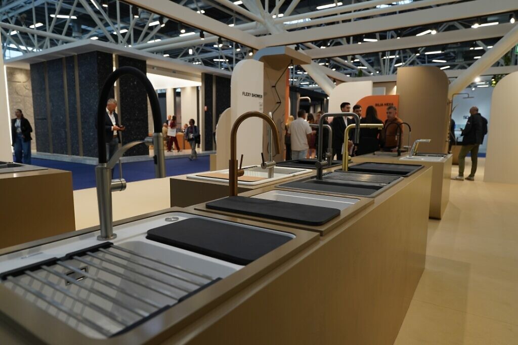 Przestrzeń marek w hali 32 wyróżniała się spójną narracją i konsekwentnie zaprojektowaną ekspozycją. ,,Jednym z mocnych akcentów tegorocznych targów było stoisko polskich marek Deante i Deante Design Studio. Duży napis „Made in Poland” z dumą wskazywał kraj pochodzenia – co w tej branży wcale nie jest tak oczywiste. Przestrzeń ekspozycyjna była jak chwila oddechu – uporządkowana, spójna i konsekwentnie zaprojektowana. Pokazywała szeroki wachlarz możliwości i w czytelny sposób wprowadzała odwiedzających w estetykę „Quiet Luxury”.” – opisuje architektka Karolina Janczy.