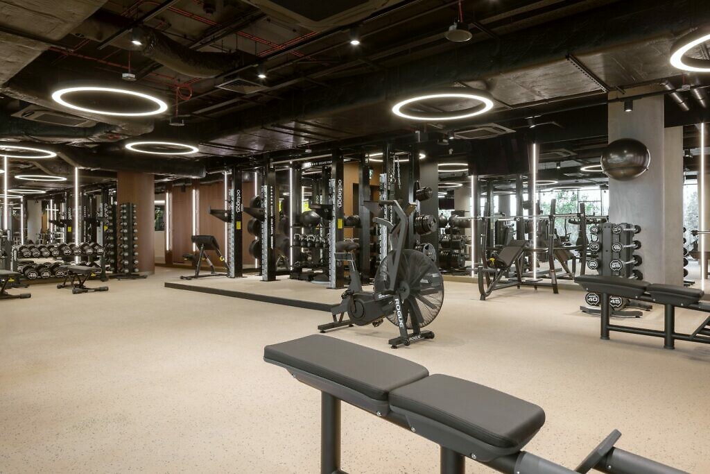 i pilatesu po trening funkcjonalny i relaks, została zaprojektowana z myślą o człowieku i jego rytmie dnia. Poza strefą treningową znajduje się tu SPA z sauną i cold plunge, pokój do masażu i fizjoterapii oraz fit bar z menu opartym na zdrowych składnikach. Przemyślana ergonomia, miękkie akustycznie materiały i zmysłowa strefa Lounge mają w zamyśle sprzyjać dbałości o dobrostan i regeneracji.