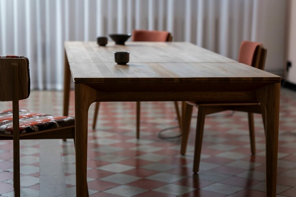 To przełożyło się na konkretne decyzje: lite drewno, olejowane blaty, które można odświeżyć lub zeszlifować, stoły rozkładane, które „rosną” wraz z rodziną, a także dbałość o detale.
