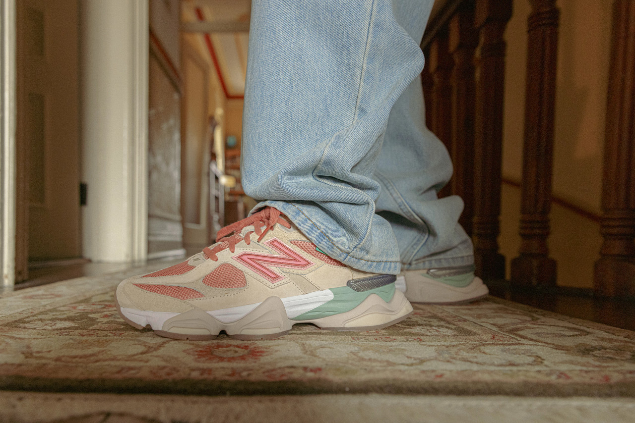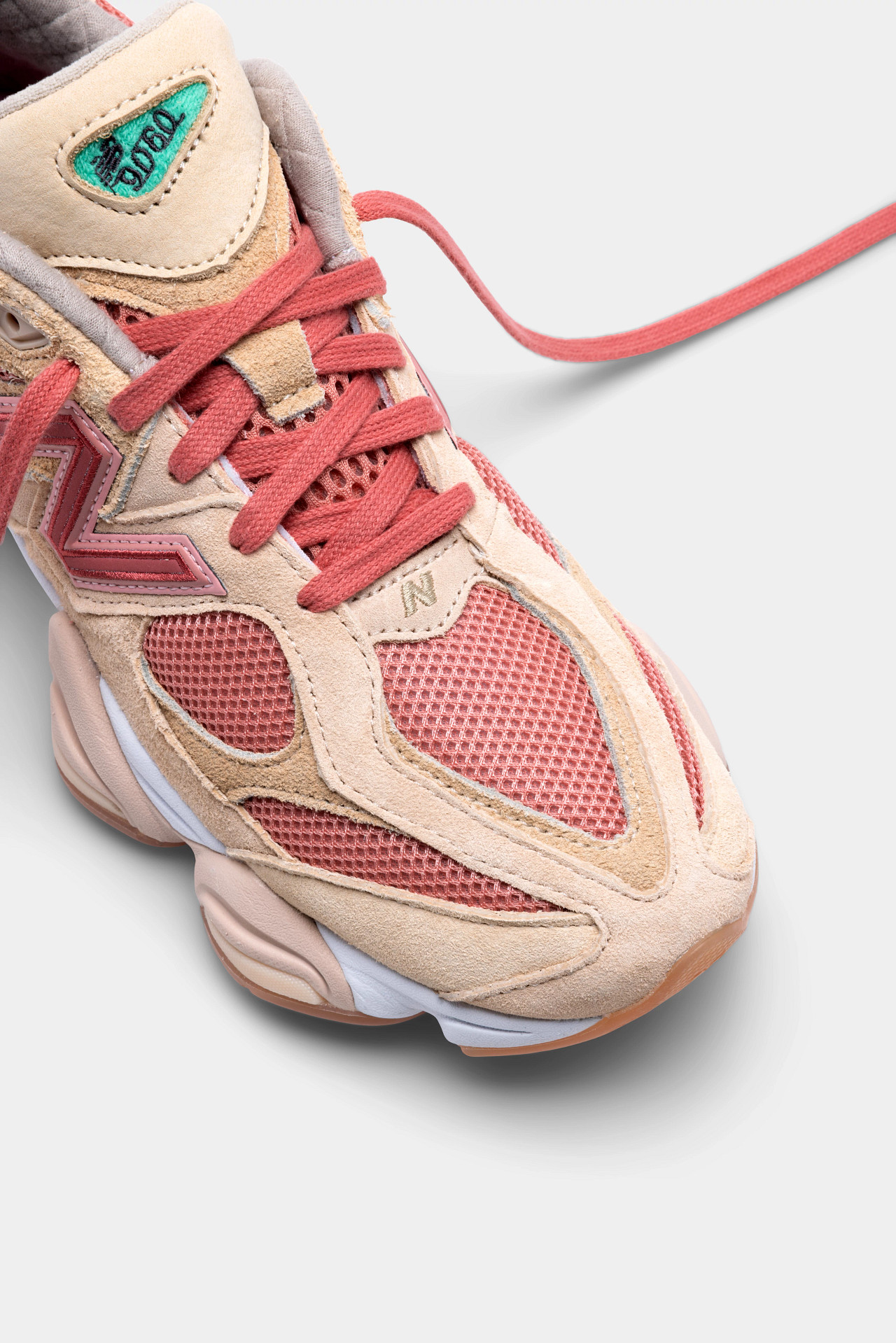 Techniczne elementy modelu 90/60 zostały zainspirowane całą serią 990 New Balance oraz butami do biegania z początku lat dwutysięcznych. Pozostając wiernymi dziedzictwu kolekcji 990, projektanci wykorzystali w 90/60 znane już detale, takie jak elementy w kształcie diamentu czy charakterystyczny wygląd logo N iwzbogacili je o świeże, nowoczesne spojrzenie. Znany ze swojego doskonałego operowania kolorem Joseph Robinson (znany szerzej jako Joe Freshgoods) wybrał delikatne odcienie cielistego beżu i błękitu nieba, które odzwierciedlają ciepło, jakiego można doświadczyć w afroamerykańskich domach. Dodatkowo siateczkowe panele i eNka z boku zostały potraktowane odcieniem różowym.