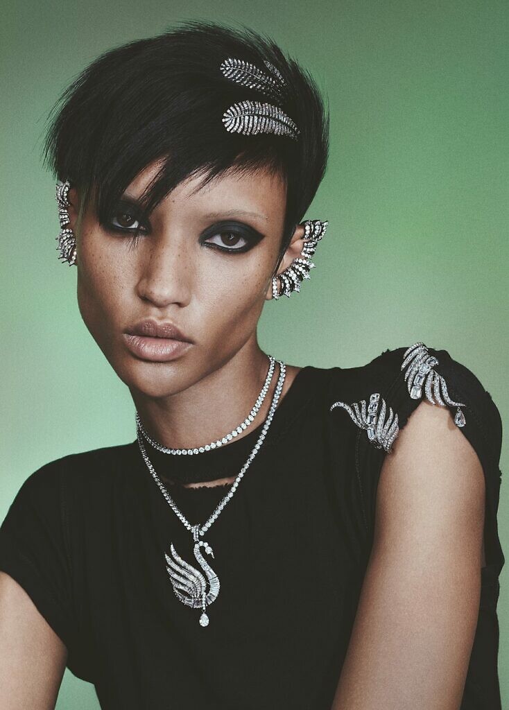 Wykonana z użyciem technik haute joaillerie i w oprawach charakterystycznych dla najszlachetniejszej biżuterii, Kolekcja Vienna obejmuje rzeźbiarskie chokery o ostrym, punkowym charakterze, nausznice przypominające pióra, oszałamiający naszyjnik łączący kryształy w szlifie bagietowym z piórami wykonanymi techniką pavé oraz wyjątkowy wisiorek w kształcie łabędzia z kryształami bagietowymi, wykonany z wykorzystaniem techniki Swarovski sparkling dance, która sprawia wrażenie, jakby łabędź się poruszał.