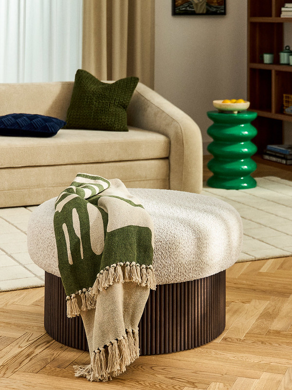 Dominantą jesiennego wnętrza są wygodne sofy i fotele, najlepiej w wersji bouclé, które wręcz kuszą, by owinąć się w koc z gorącą kawą lub herbatą. Pufy i podnóżki posłużą jako praktyczne miejsce na odpoczynek dla nóg, ale dzięki unikalnym kształtom i materiałom stają się również elementem dekoracyjnym. Nie zapomnijmy także o stolikach kawowych i szafkach. Te o nietypowej strukturze lub z połączenia drewna i metalu wyglądają nie tylko funkcjonalnie, ale wręcz artystycznie.