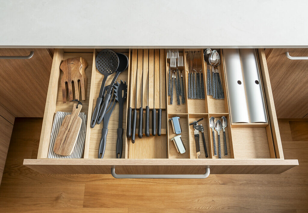 Szczęście to uporządkowana szuflada. Kiedy goście już siedzą przy stole, a Ty sięgasz po nóż do krojenia ciasta, liczy się idealny porządek. Fineline LiniQ to nie tylko idealny porządek w szufladzie, ale i elegancja w naturalnych, estetycznych materiałach.