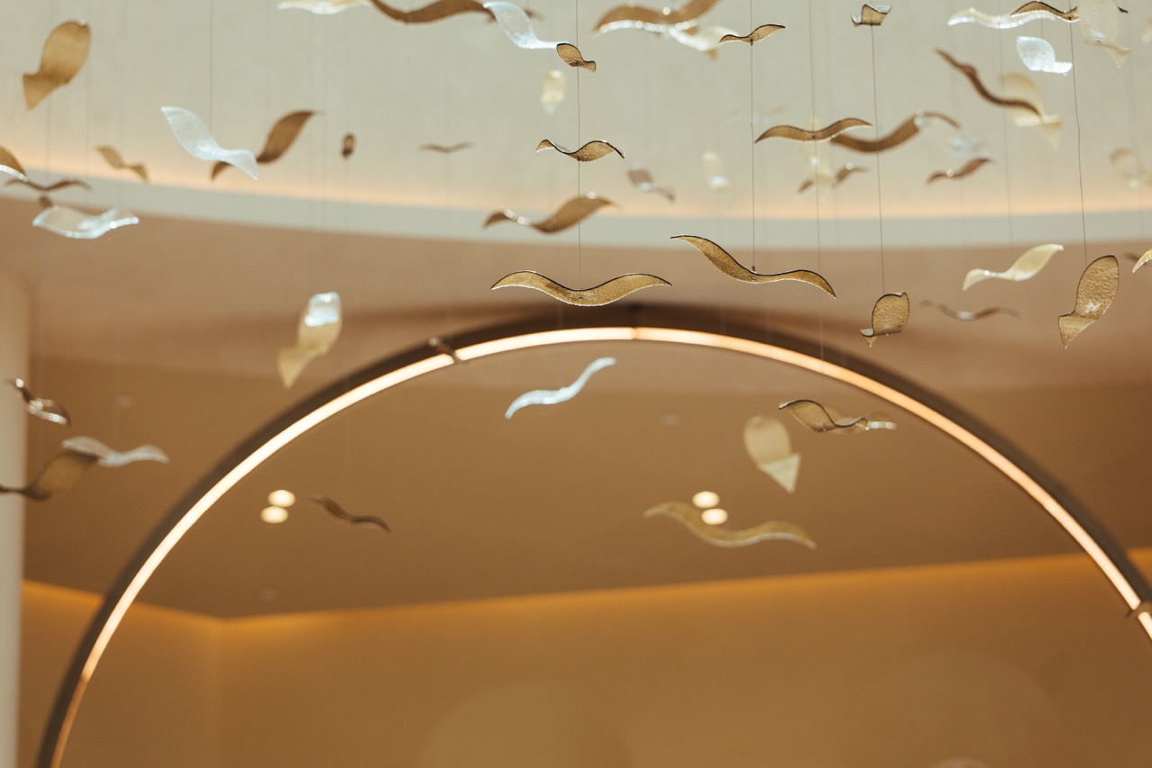 Kluczowym założeniem projektowym było zawieszenie każdego elementu w idealnym poziomie. — „Ptaki nie mogły się przechylać w żadną stronę — miały ‘lecieć’ równo pod kopułą, tworząc harmonijną, uporządkowaną kompozycję” — podkreśla projektantka. Równie istotna była symbolika osi widokowej prowadzącej wprost ku Burj Khalifa — najwyższemu budynkowi świata. — „Inwestorowi zależało, by patrząc w górę, dostrzegać zarówno lekkość instalacji, jak i majestat wieży. Ten widok miał tworzyć spójną, pełną znaczeń całość” — dodaje.