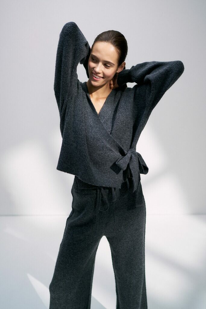 PRO TIP SHOPPINGOWY: Taki dzianinowy zestaw można też świetnie wystylizować na wyjście: kawę z przyjaciółką, spotkanie w gronie znajomych, do kina czy na zakupy. Załóż do niego płaszcz midi w zbliżonym kolorze, ciepłe śniegowce i wełnianą czapkę i masz gotowy bardzo modowy i ultra komfortowy look.