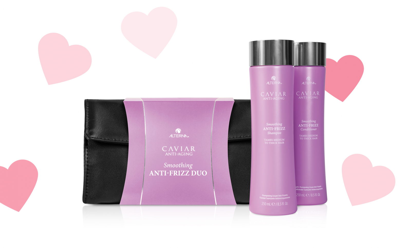 Wymagającej i ceniącej najwyższej jakości pielęgnację podaruj wyjątkowy zestaw wygładzający do włosów od Alterny. Ta wyjątkowa linia z ekstraktem z kawioru pozwala uzyskać efekt młodzieńczej jedwabistości oraz gładkości. W zestawie znajduje się szampon oraz odżywka wraz z elegancką, skórzaną kosmetyczką. Podaruj ukochanej w prezencie piękne włosy oraz otul ją odrobiną luksusu.