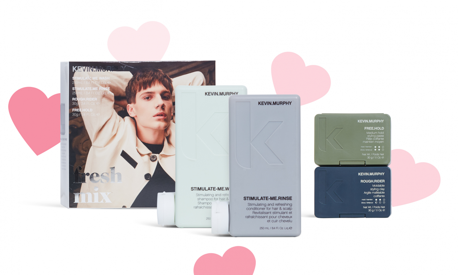 Jeśli szukasz prezentu dla swojego ukochanego mężczyzny, postaw na praktyczne rozwiązanie. Wybierz zestaw FRESH MIX od marki KEVIN.MURPHY, który zawiera wszystko to, czego potrzebuje zadbany oraz nowoczesny mężczyzna. W zestawie znajduje się stymulujący szampon i odżywka, oraz dwie mini pasty do stylizacji. Poszukiwania idealnego prezentu dla Niego możesz uznać za zakończone sukcesem.